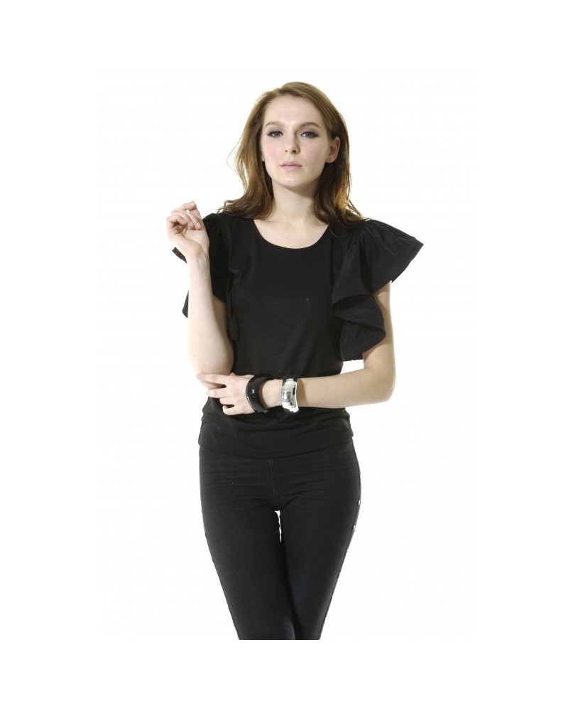 Bluză cu mâneci scurte cu detalii feminine drapate la mâneci.