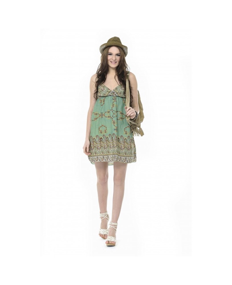 Rochie imprimată până la genunchi, din șifon, cu bretele. Decolteu adânc în V.